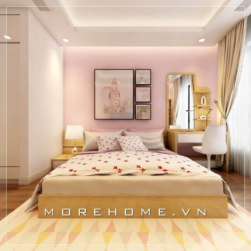 Mẫu giường ngủ màu vàng ấn tượng là gợi ý không tồi cho không gian phòng ngủ con gái