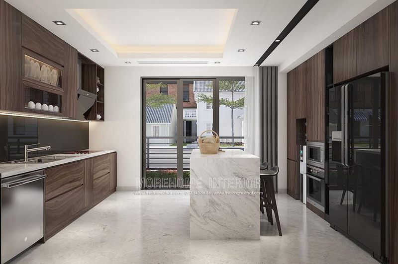 Đảo bếp mặt đá trắng vân mây hiện đại trang trí tô điểm thẩm mỹ